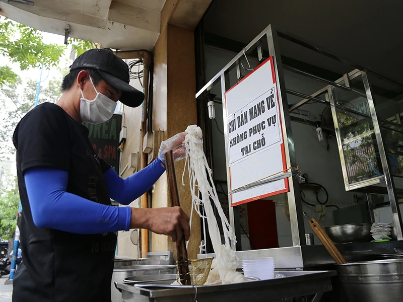 Các hàng quán ở TP.HCM chỉ phục vụ bán mang về trong thời gian thực hiện Chỉ thị 16 về cách ly xã hội. Ảnh: HOÀNG GIANG
