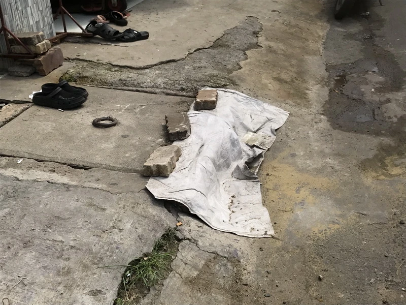 Thậm chí người dân còn đúc cả tấm bê tông xi măng để bịt cống ngăn mùi