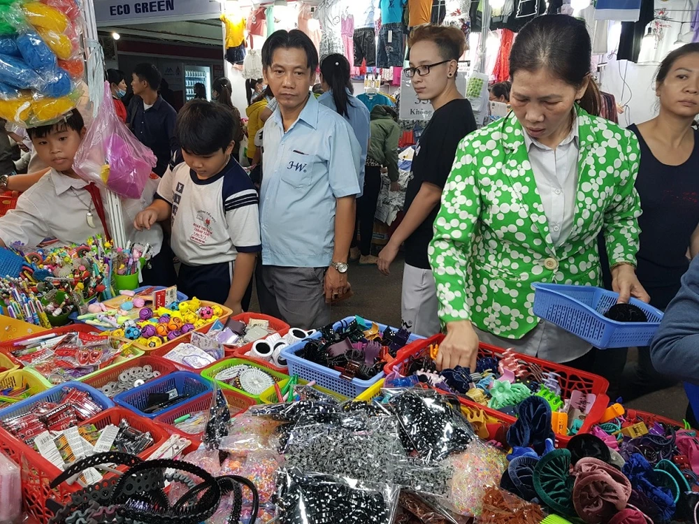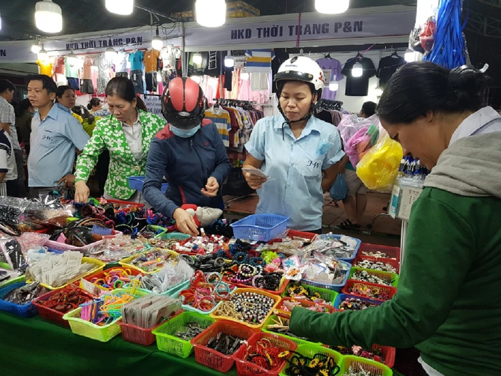 Phiên chợ thu hút hàng ngàn công nhân đến mua sắm. Ảnh: HĐ