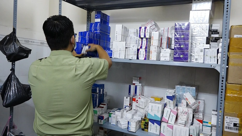Trưa ngày 1-4, Đội 7 Phòng Cảnh sát kinh tế, Công an TP.HCM phối hợp với Đội 3 Cục Quản lý thị trường TP kiểm tra một căn nhà trên đường Nguyễn Giản Thanh, quận 10 phát hiện số lượng lớn thuốc tân dược, thực phẩm chức năng nghi nhập lậu.
