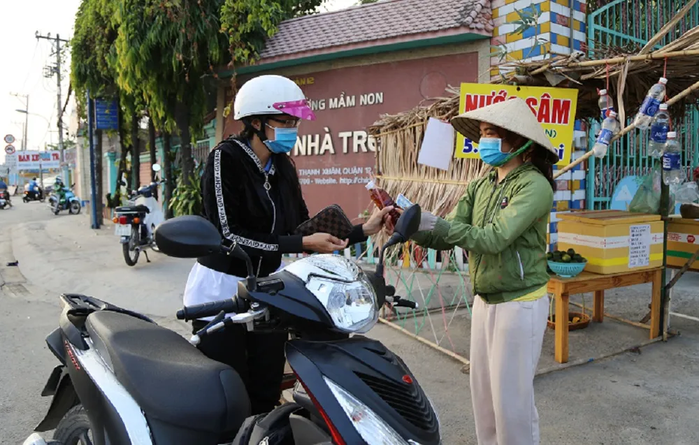 Các cô giáo Trường mầm non Ngôi nhà trẻ thơ (quận 12, TP.HCM) bán hàng kiếm thêm thu nhập trong thời gian trẻ nghỉ học vì dịch COVID-19. Ảnh: HOÀNG GIANG