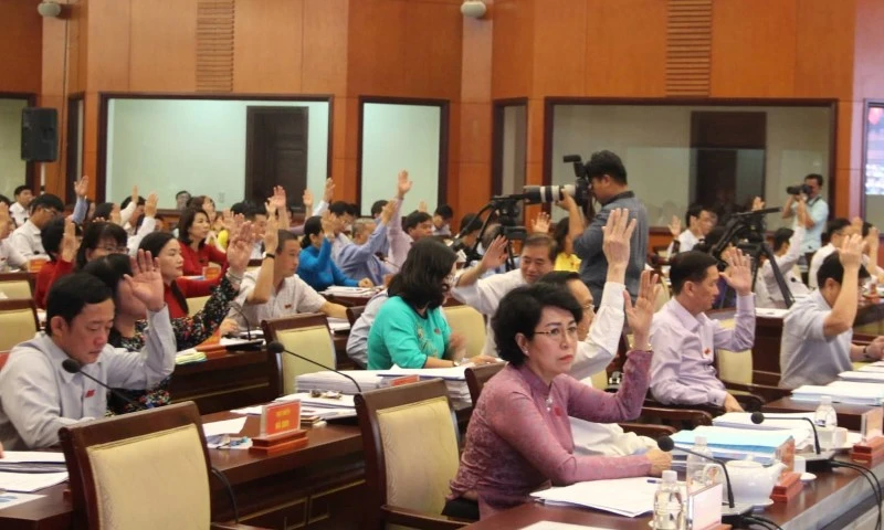 Các đại biểu HĐND TP.HCM thông qua các tờ trình giảm học phí của UBND TP. Ảnh: TÁ LÂM