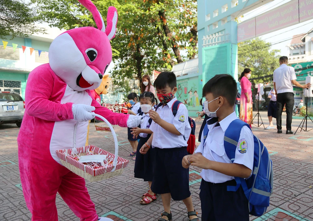 Ghi nhận của PV tại trường Trường Tiểu học Lê Văn Thọ (quận Gò Vấp, TP.HCM), công tác đón học sinh trở lại trường được chuẩn bị chu đáo, thận trọng. Học sinh được hướng dẫn đo thân nhiệt, được những chú gấu tặng kẹo chào đón ngày đầu trở lại trường.