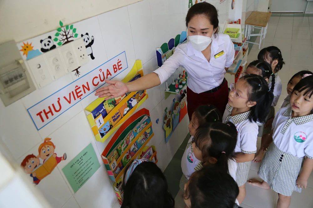 Cũng trong sáng nay, tại Trường mầm non Hạnh Thông Tây (quận Gò Vấp, TP.HCM), không khí đón và dạy học trong ngày đầu hết sức vui tươi, hào hứng.