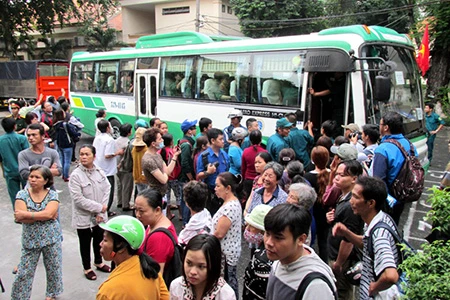 Sáng 8-9, đông đảo người thân đến UBND quận Bình Thạnh tiễn các công dân lên đường nhập ngũ. Ảnh: Phước Tĩnh
