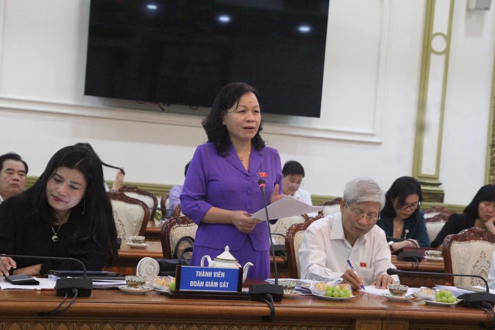 Đại diện Sở LĐ-TB&XH TP.HCM báo cáo với đoàn giám sát. Ảnh: YC