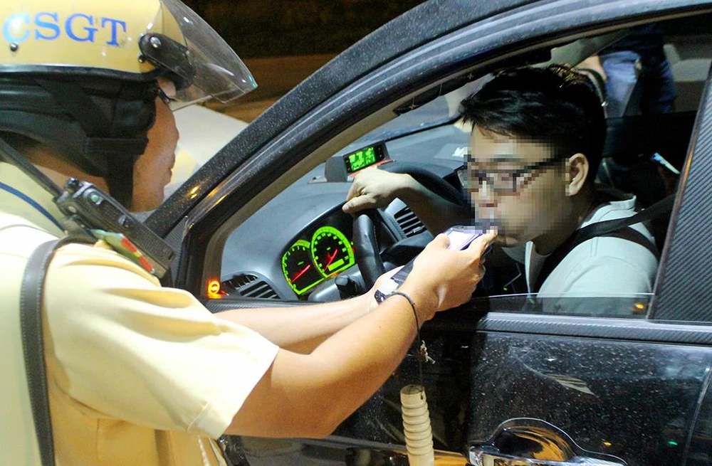 Tối 15-7, Đội CSGT Rạch Chiếc xử phạt theo chuyên đề lái xe say xỉn. Ảnh: L.THOA