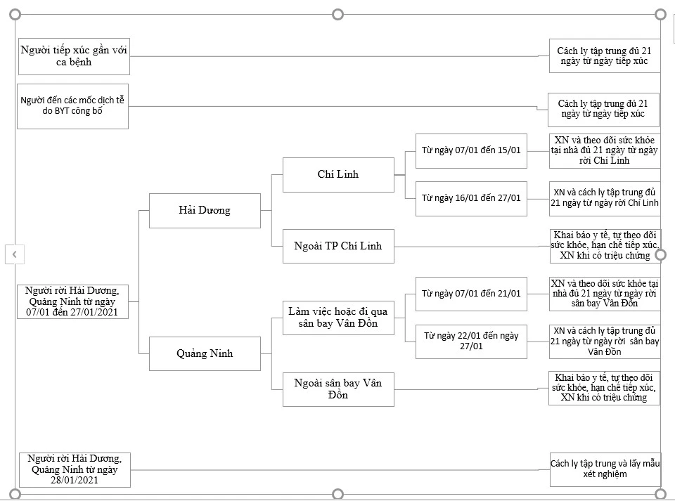 Người rời TP Chí Linh từ ngày 16 đến 27-1, xét nghiệm và cách ly tập trung đủ 21 ngày kể từ ngày rời TP Chí Linh.