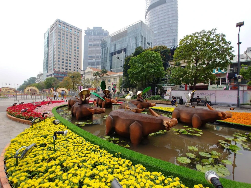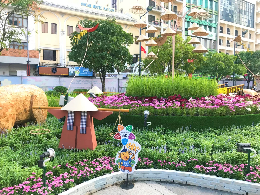 Tiểu cảnh tại đường hoa Nguyễn Huệ 2021.