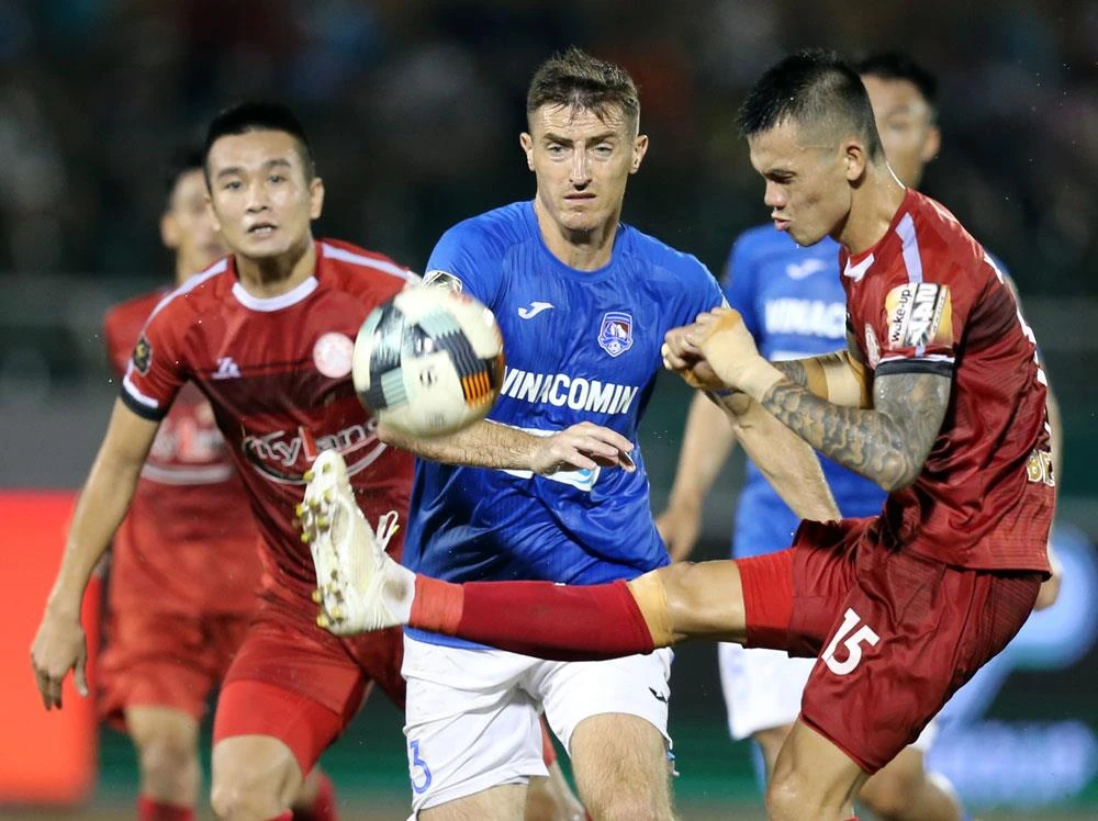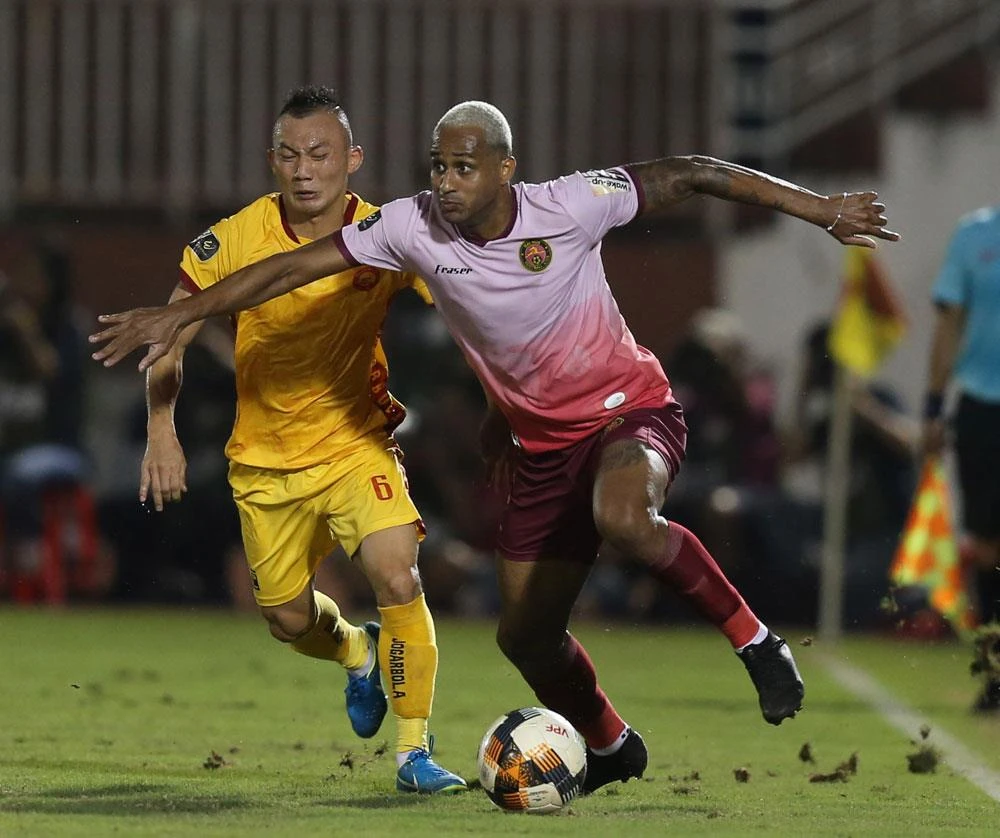 TP.HCM níu kéo tham vọng soán ngôi Hà Nội sau trận thắng SL Nghệ An 2-1. Ảnh: VPF