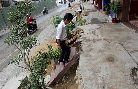 Nhiều nhà trên đường Bạch Đằng, phường 2, quận Tân Bình (TP.HCM) phải bắc cầu thang lên xuống. Ảnh: HOÀNG GIANG
