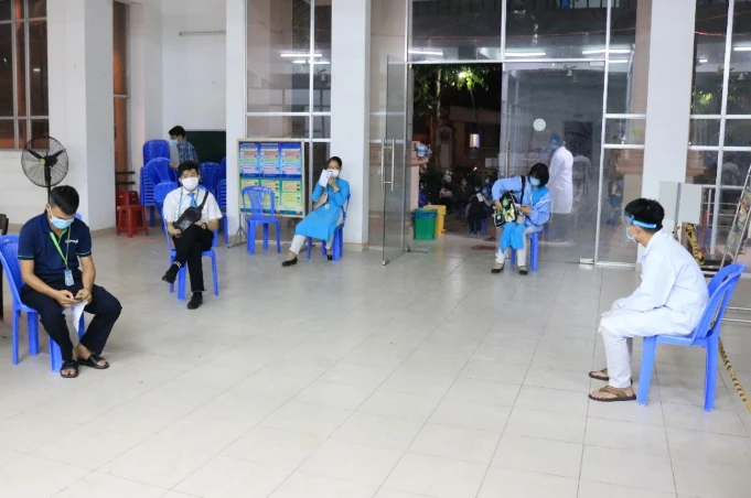 Nhân viên làm ở sân bay chờ lấy mẫu xét nghiệm. Ảnh: HCDC