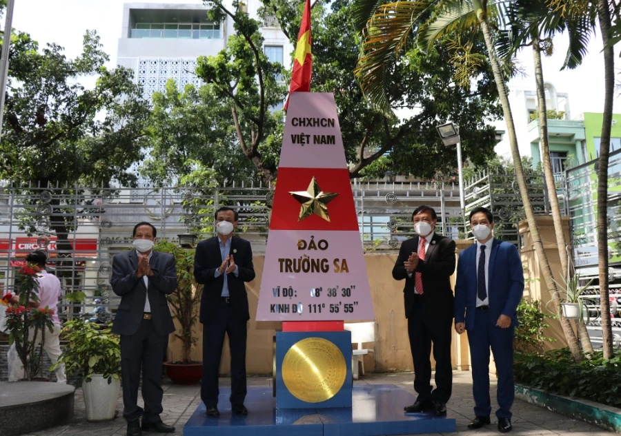 Khánh thành mô hình cột mốc chủ quyền biển đảo tại Ủy ban về người Việt Nam ở nước ngoài TP.HCM. Ảnh: PHƯƠNG THÙY