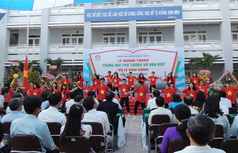 Cùng ngày, bốn trường học khác tại TP.HCM cũng tưng bừng làm lễ khánh thành và khai giảng năm học mới. Đó là Trường THCS Nguyễn Trung Trực (quận 12); THCS Nguyễn Huệ (quận Tân Phú); Trường Tiểu học Hoàng Hoa Thám (Hóc Môn) và THPT Nguyễn Hữu Cầu (Hóc Môn).