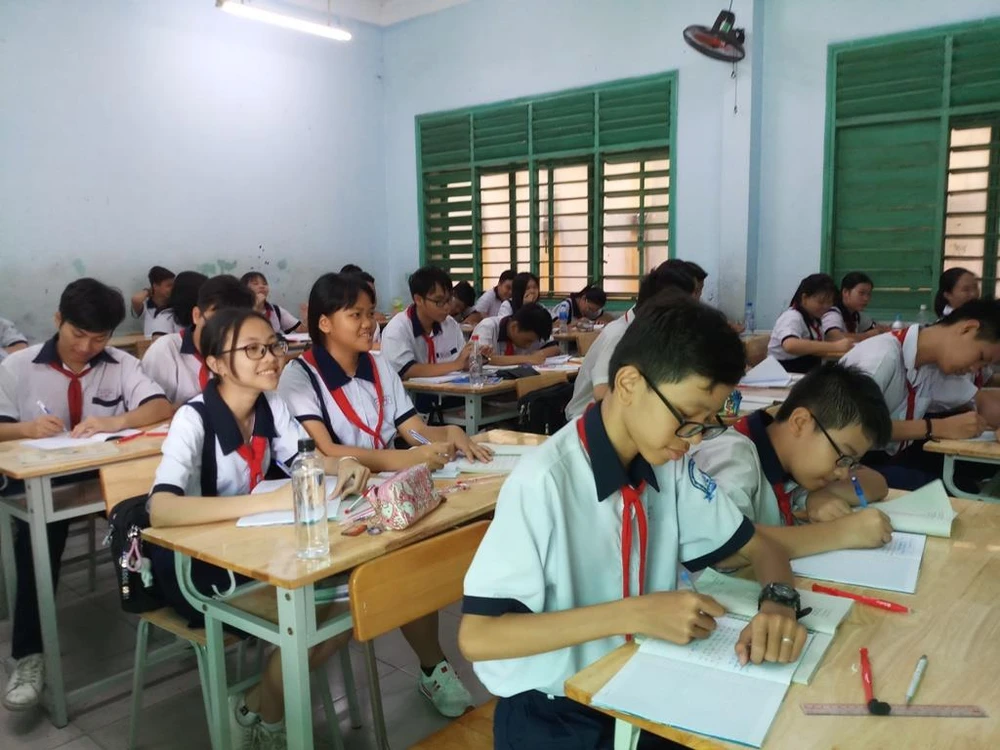 Học sinh lớp 9 trường THCS Phú Thọ, quận 11. Ảnh: NGUYỄN QUYÊN
