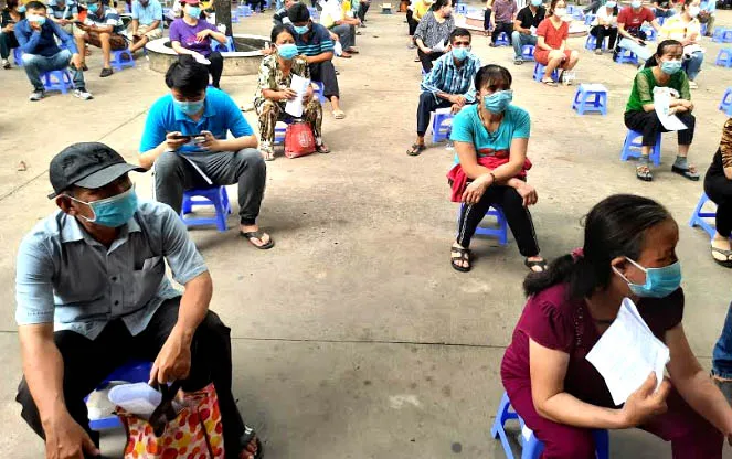 Chiều 26-6, rất nhiêu tiểu thương buôn bán tại các chợ trên địa bàn quận 12, TP.HCM có mặt tại Trường THCS Trần Quang Khải để tiêm vaccine ngừa COVID-19.