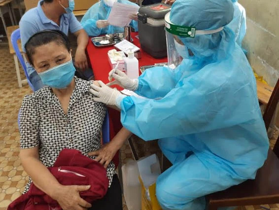 Một tiểu thương được nhân viên y tế tiêm vaccine ngừa COVID-19. Ảnh: TRẦN NGỌC