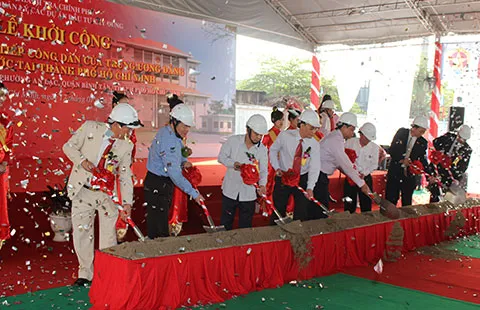Tổng Thanh tra Chính phủ Huỳnh Phong Tranh cùng các đại biểu trong lễ khởi công. Ảnh: ĐINH ĐỒNG