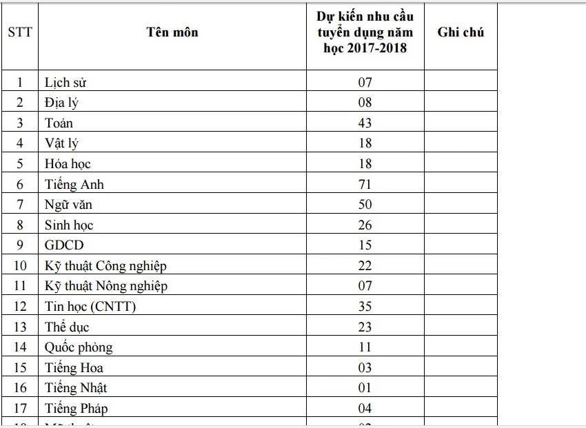 Nhu cầu cần tuyển giáo viên ở một số bộ môn của khối THPT và GDTX