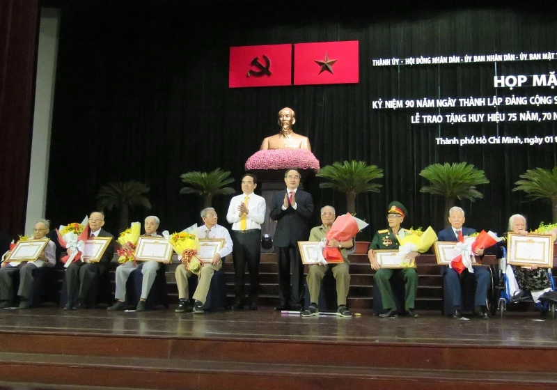 Cũng tại buổi lễ, 102 đảng viên được nhận Huy hiệu Đảng, trong đó chín người nhận Huy hiệu 75 năm tuổi Đảng, 73 người nhận Huy hiệu 70 năm tuổi Đảng và 20 người nhận Huy hiệu 60 năm tuổi Đảng.
