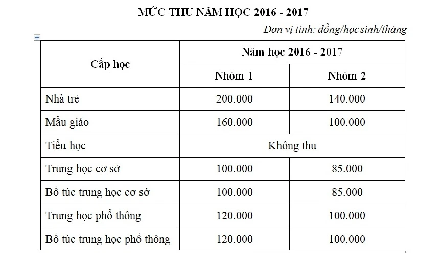Riêng với các khoản thu ở các trường tiên tiến theo xu thế hội nhập vẫn tiếp tục thực hiện theo Quyết định 3968 của UBND TP ban hành năm 2015. Tức là học phí chính quy là 120.000 đồng/học sinh/tháng. Các khoản thu còn lại được thỏa thuận để đảm bảo các yêu cầu hoạt động thực hiện mô hình tiên tiến nhưng tổng mức thu thỏa thuận không quá 1,5 triệu đồng/học sinh/tháng.
