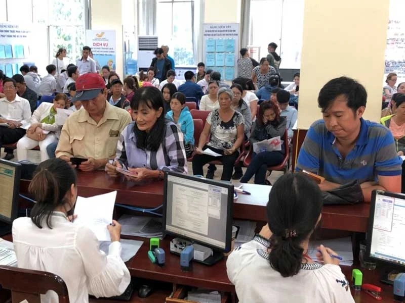 Người dân đến Sở Tư pháp TP.HCM làm thủ tục hành chính trong ngày đầu năm. Ảnh: KP