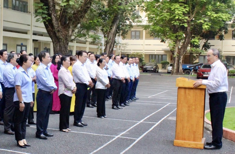 Bí thư Nguyễn Thiện Nhân chúc cán bộ, công chức, người lao động các Ban của Thành ủy, Văn phòng Thành ủy và Ủy ban Kiểm tra Thành ủy nhiều sức khỏe, nhiều sáng tạo và hoàn thành tốt nhiệm vụ được giao.