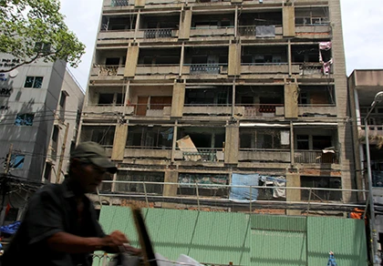 Chung cư 727 Trần Hưng Đạo, quận 1 hư hỏng nặng nhiều năm nay nhưng chưa có nhà đầu tư thực hiện dự án. Ảnh: Hoàng Giang