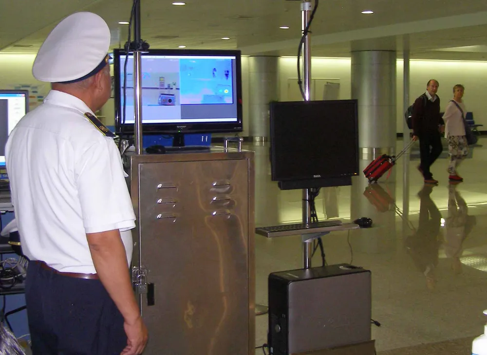 Du khách vào TP.HCM được theo dõi thân nhiệt để phát hiện bệnh viêm đường hô hấp cấp. Ảnh: TRẦN NGỌC