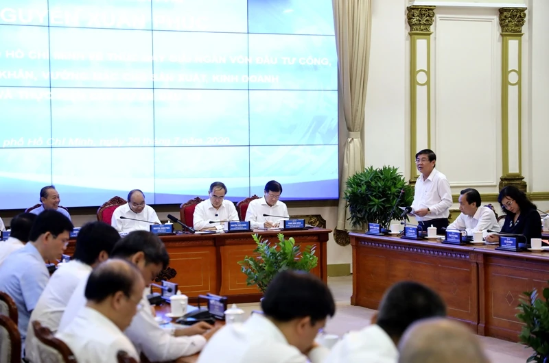 Báo cáo tại cuộc họp, Chủ tịch UBND TP.HCM Nguyễn Thành Phong, cho biết năm 2020, UBND TP đã giao và phân bố chi tiết kế hoạch vốn đầu tư công của TP với tổng số vốn là hơn 41.691 tỉ đồng. Trong đó vốn ngân sách TP là hơn 33.940 tỉ đồng, vốn ngân sách Trung ương là hơn 7.751 tỉ đồng.
