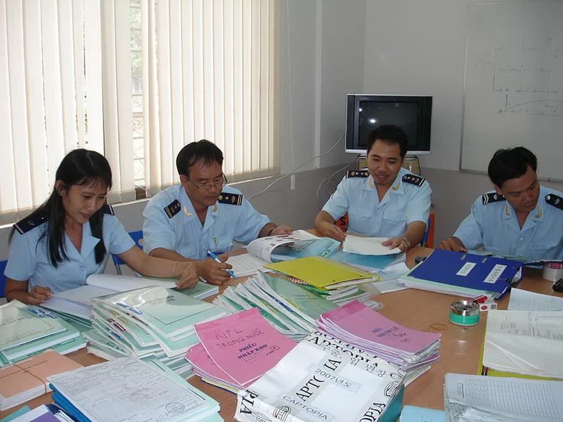 Lực lượng thanh tra đang thực hiện nhiệm vụ. Ảnh: AN NHI/KTĐT