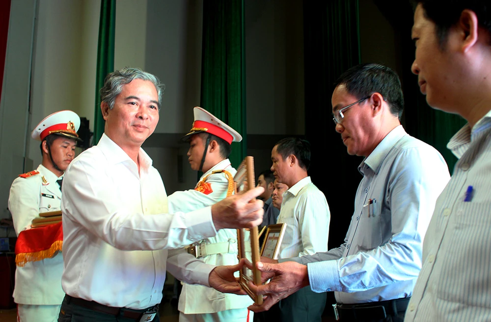 Ông Ngô Minh Châu, Phó Chủ tịch UBND TP.HCM, trao bằng khen của UBND TP cho các tập thể, cá nhân đạt thành tích xuất sắc trong công tác xây dựng quốc phòng toàn dân 2009-2019. Ảnh: LÊ THOA