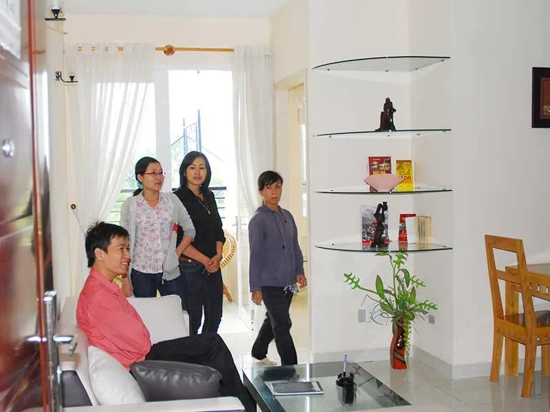 Khách hàng đang tham quan một mẫu nhà giá rẻ dành cho người thu nhập thấp ở TP.HCM. Ảnh: HTD
