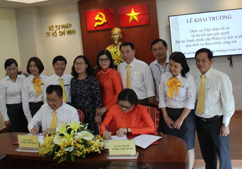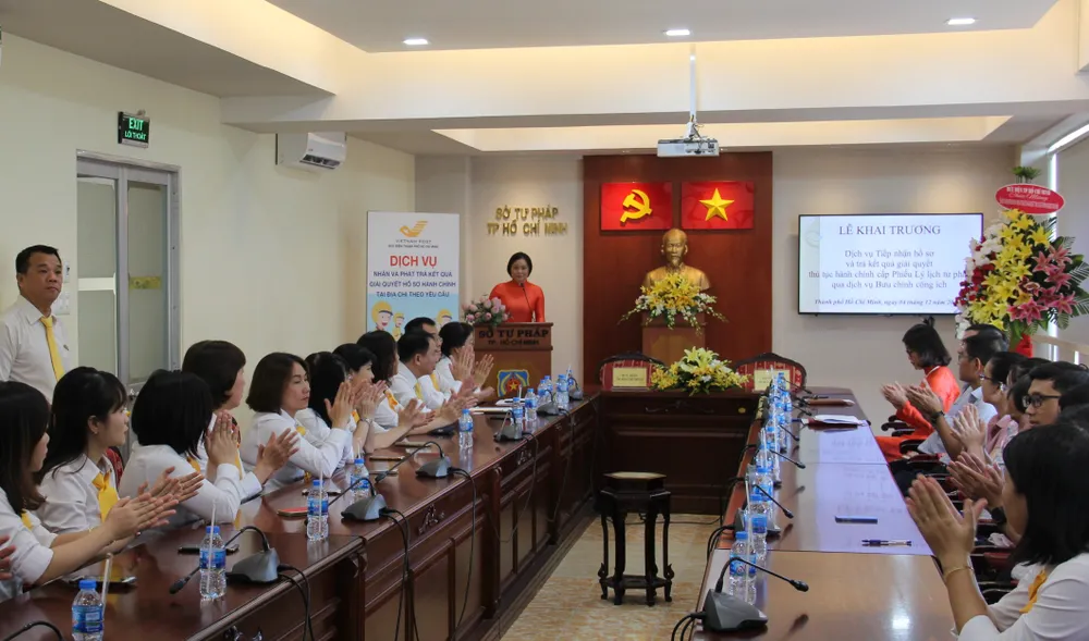 Sáng 4-11, Sở Tư pháp TP.HCM và bưu điện TP đã triển khai thực hiện dịch vụ tiếp nhận hồ sơ và trả kết quả giải quyết thủ tục hành chính cấp phiếu LLTP tới tận nhà dân.