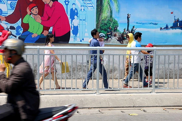 Dải phân cách ngăn người đi bộ với phương tiện lưu thông dưới đường. Ảnh: HOÀNG GIANG