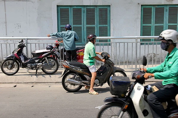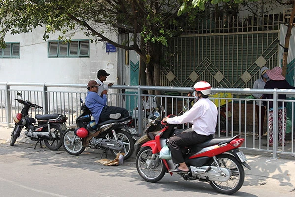 Xe ôm “cố thủ” bên ngoài dải phân cách để kiếm sống. Ảnh: HOÀNG GIANG