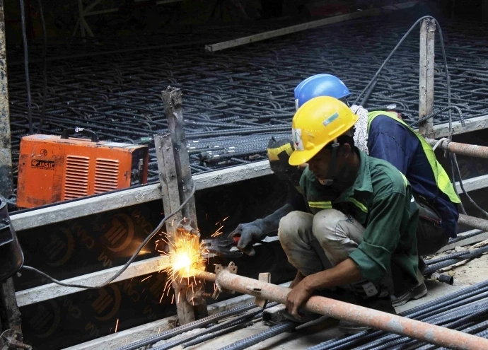 Công nhân đang thi công hệ thống ngầm của tuyến metro Bến Thành-Suối Tiên
