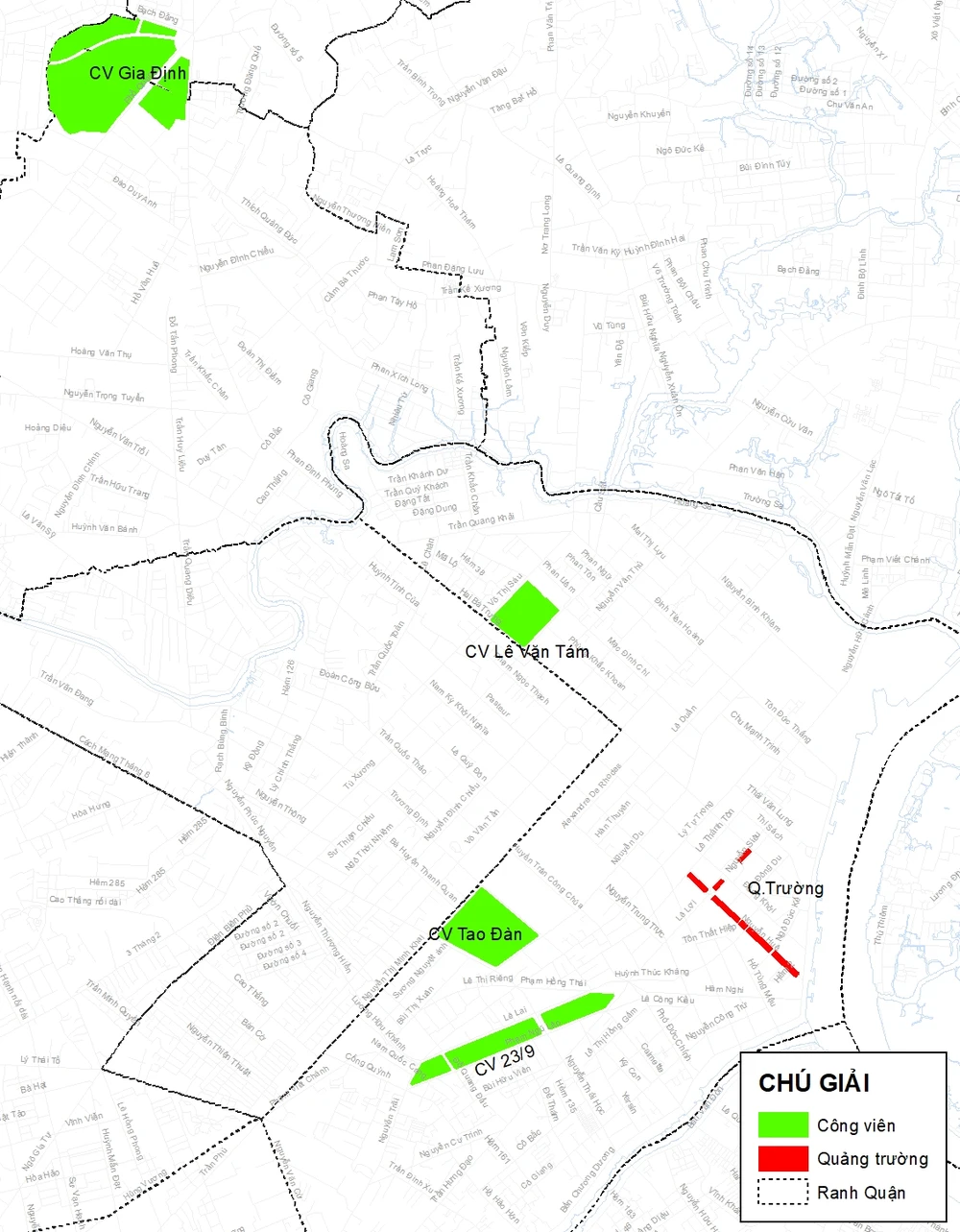 Chức năng công trình quanh khu vực công viên 23-9. TP.HCM cho phép chiều cao và mật độ phát triển dọc theo công viên 23-9 cao với mục đích: Tận dụng bóng mát từ công trình tỏa xuống công viên để giảm nhiệt độ công viên; thu hút người trong các tòa nhà đến với công viên; tạo cảm giác được bao bọc như một sân trong của thành phố.