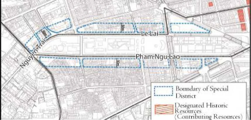 TP nghiêm cấm việc tháo dỡ các công trình đóng góp vào giá trị lịch sử của thành phố khu vực này. Bất kỳ sửa đổi nào liên quan đến mặt tiền của các công trình này chỉ được thực hiện nếu không ảnh hưởng đến thiết kế và hình dáng nguyên thủy của công trình. Không cho phép bố trí thêm tầng cao hoặc kết cấu mái cho các công trình được xác định có vai trò đóng góp vào nguồn lực lịch sử. Trong ảnh phần màu đỏ là các công trình lịch sử của khu vực chợ Bến Thành.