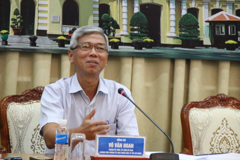 Chánh Văn phòng UBND TP.HCM Võ Văn Hoan chủ trì buổi họp báo. Ảnh: TÁ LÂM