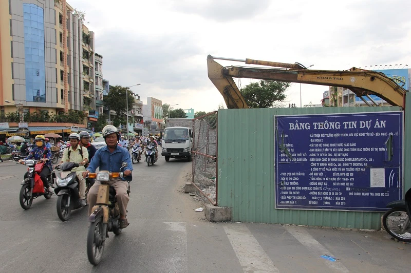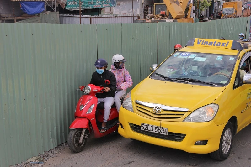 Đoạn rào chắn thi công trên đường Trần Quốc Hoàn (quận Tân Bình).