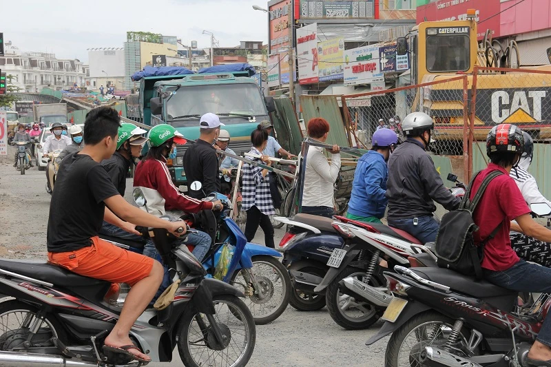 Công trình xây dựng cầu vượt thép tại nút giao ngã 6 Gò Vấp đang thi công, thường xuyên gây ra tình trạng kẹt xe.