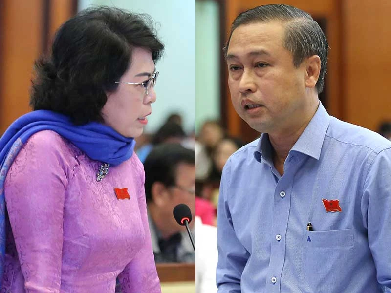 Chủ tịch Ủy ban MTTQ TP.HCM Tô Thị Bích Châu (trái) và Giám đốc Sở Văn hóa - Thể thao Huỳnh Thanh Nhân phát biểu tại kỳ họp. Ảnh: HOÀNG GIANG