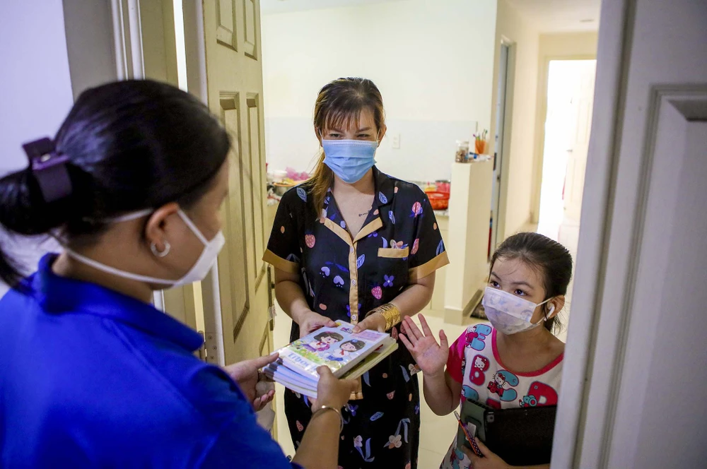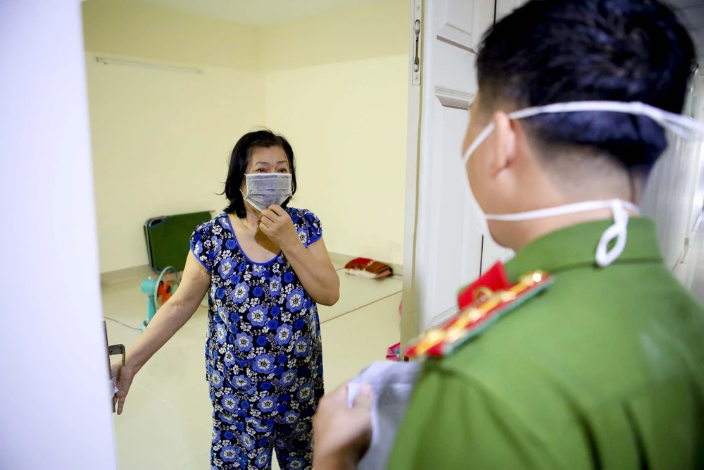 Sáng thứ hai đầu tuần, Đại uý Phạm Công Sỹ (Công an quận Bình Thạnh) cầm trên tay danh sách các em học sinh rồi đến từng hộ để hỏi thăm về điều kiện học tập và nhắc các gia đình cho con em xuống sảnh A chung cư để học online. Được biết, đây đều là những hộ "gia đình xanh" thuộc địa bàn quận Bình Thạnh đã test âm tính với SARS-CoV-2 và được bóc tách ra khỏi địa bàn nguy cơ cao do dịch bệnh từ ngày 6-9.