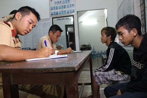 CSGT đang hỏi đối tượng để lập biên bản tại đội CSGT quận 5