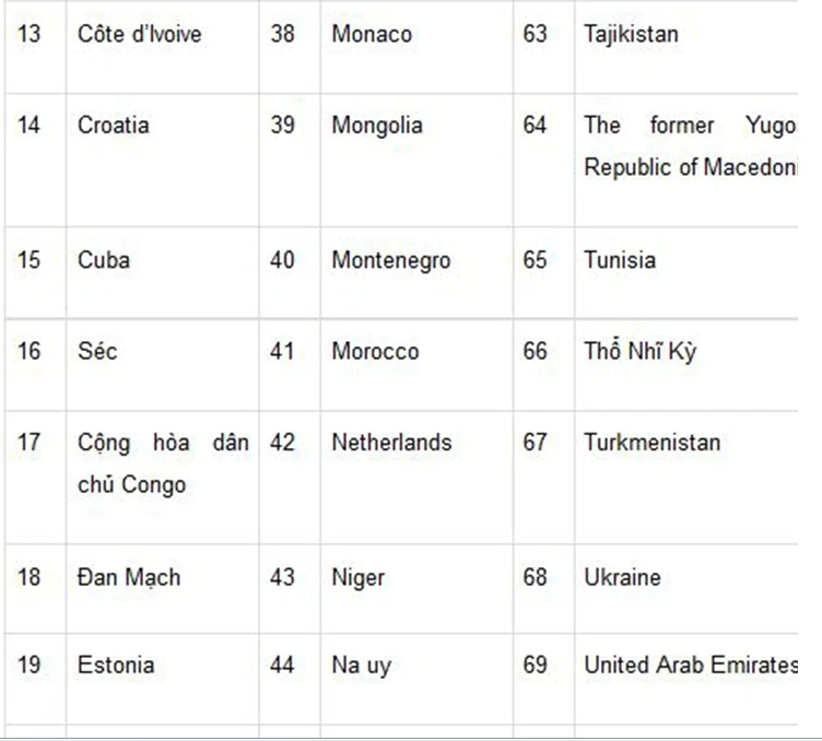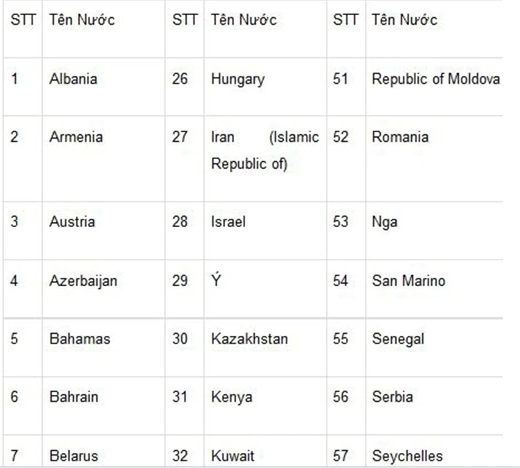 Danh sách 73 nước áp dụng GPLX IDP theo Công ước Vienna: