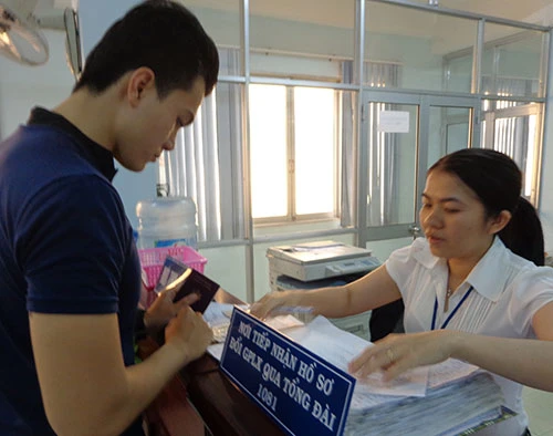Người Việt Nam sau khi đăng ký qua tổng đài (08) 1081 đến 252 Lý Chính Thắng, quận 3 làm thủ tục đổi GPLX quốc tế.