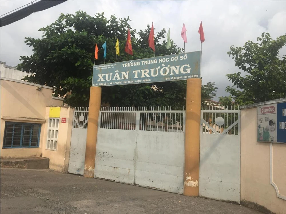 Trường THCS Xuân Trường, quận Thủ Đức nơi xảy ra sự việc. Ảnh: NGUYỄN QUYÊN