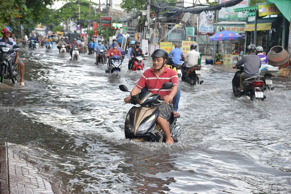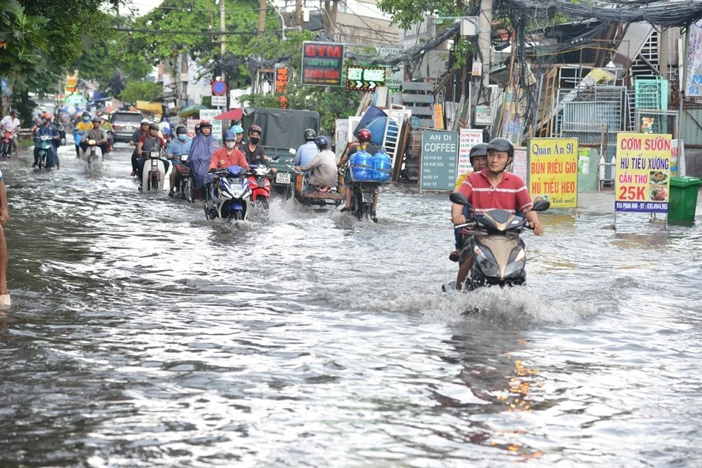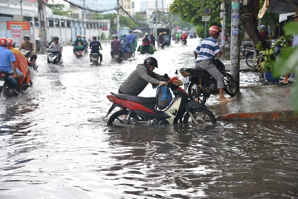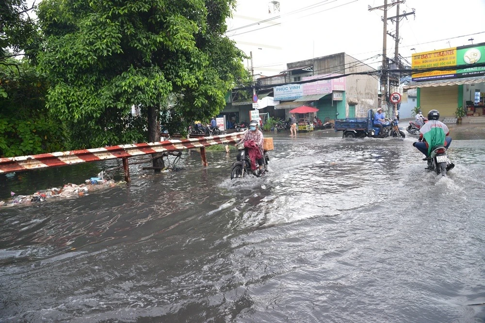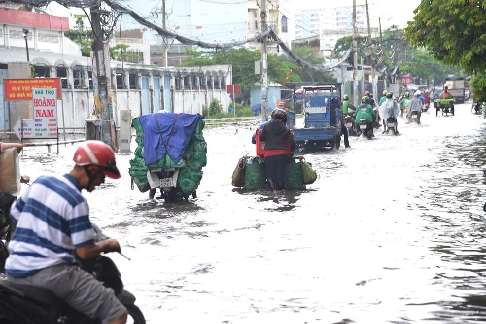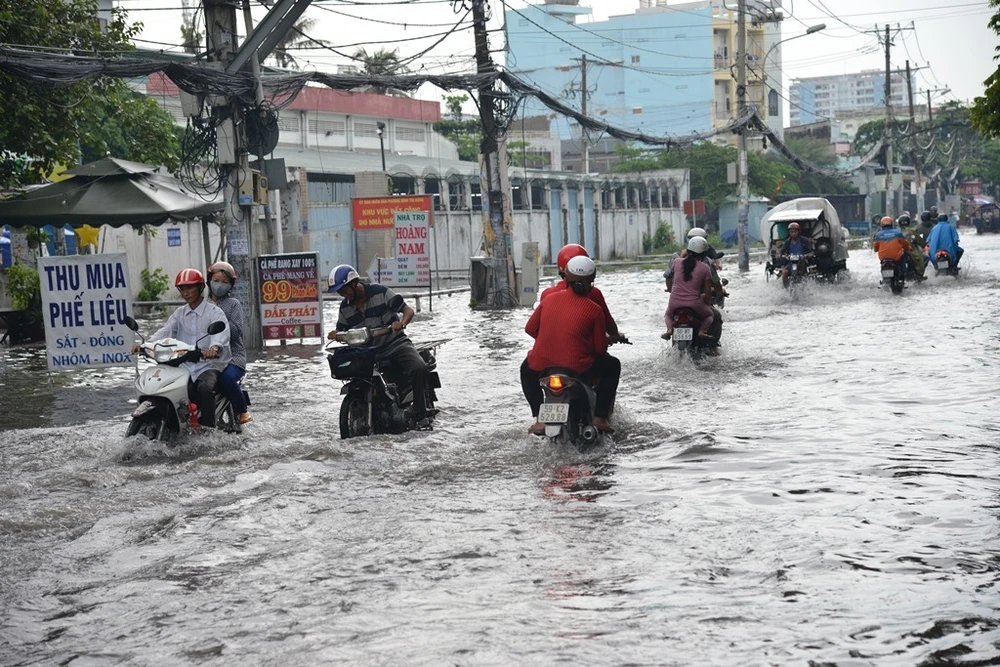 Trên đường Phan Anh giáp ranh giữa quận Bình Tân và Tân Phú rơi vào tình trạng ngập nặng, kéo dài.