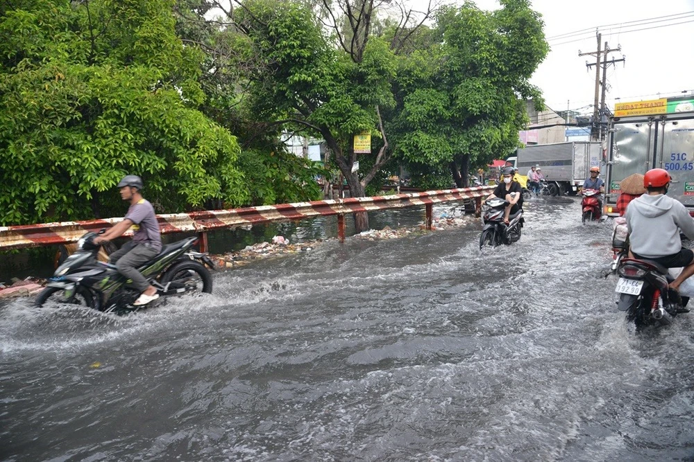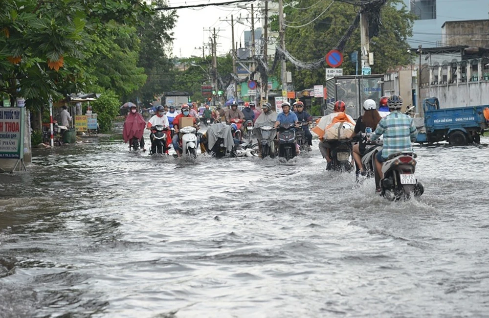 Chiều ngày 13-7, trận mưa lớn kéo dài chừng một giờ đồng hồ trút xuống nhiều quận, huyện ở TP.HCM khiến nhiều tuyến đường bị ngập.